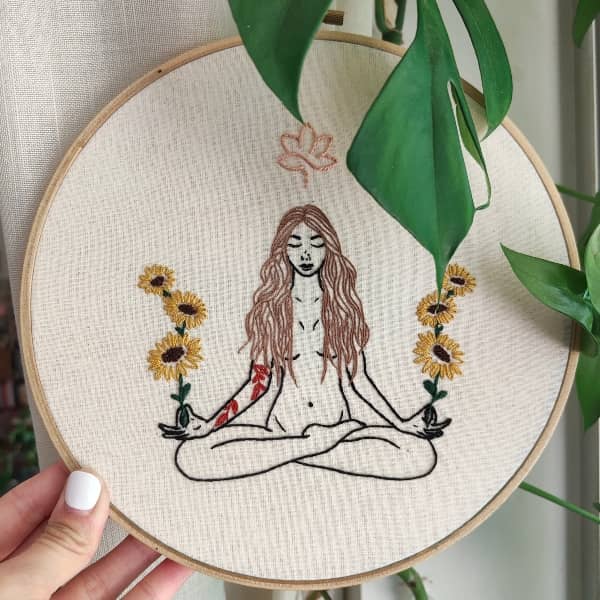 This embroidery kit comes with a 20cm wooden embroidery hoop, natural calico cotton material, transfer paper and pen, all the thread you need to complete your design, a needle, and an instructional document that walks you through the process of completing your project.